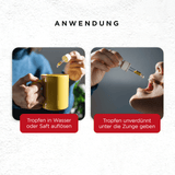 Nehmen Sie täglich 5 Tropfen in einem Glas Wasser oder Fruchtsaft ein. Für die beste Wirkung empfiehlt sich die Einnahme während einer Mahlzeit.